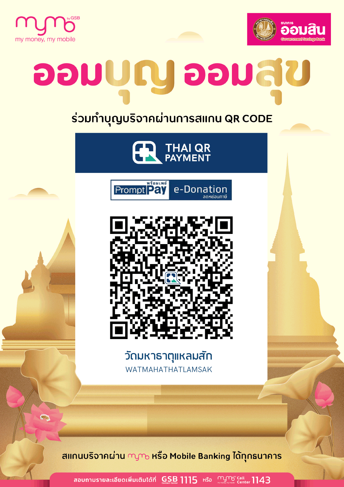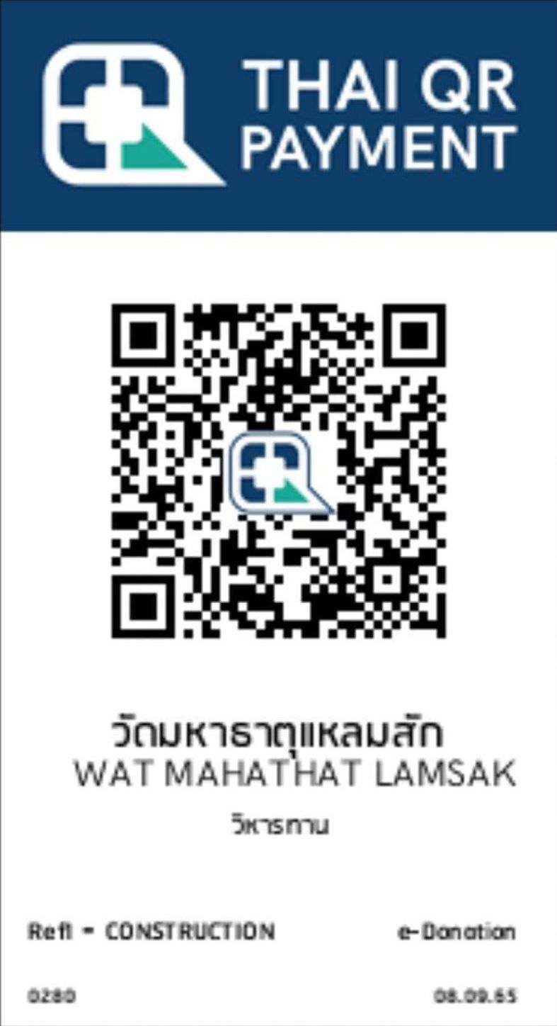 หรือสแกนคิวอาร์โค้ด บัญชีวัดมหาธาตุแหลมสัก ด้านล่างนี้สำหรับสร้างอุโบสถใหม่