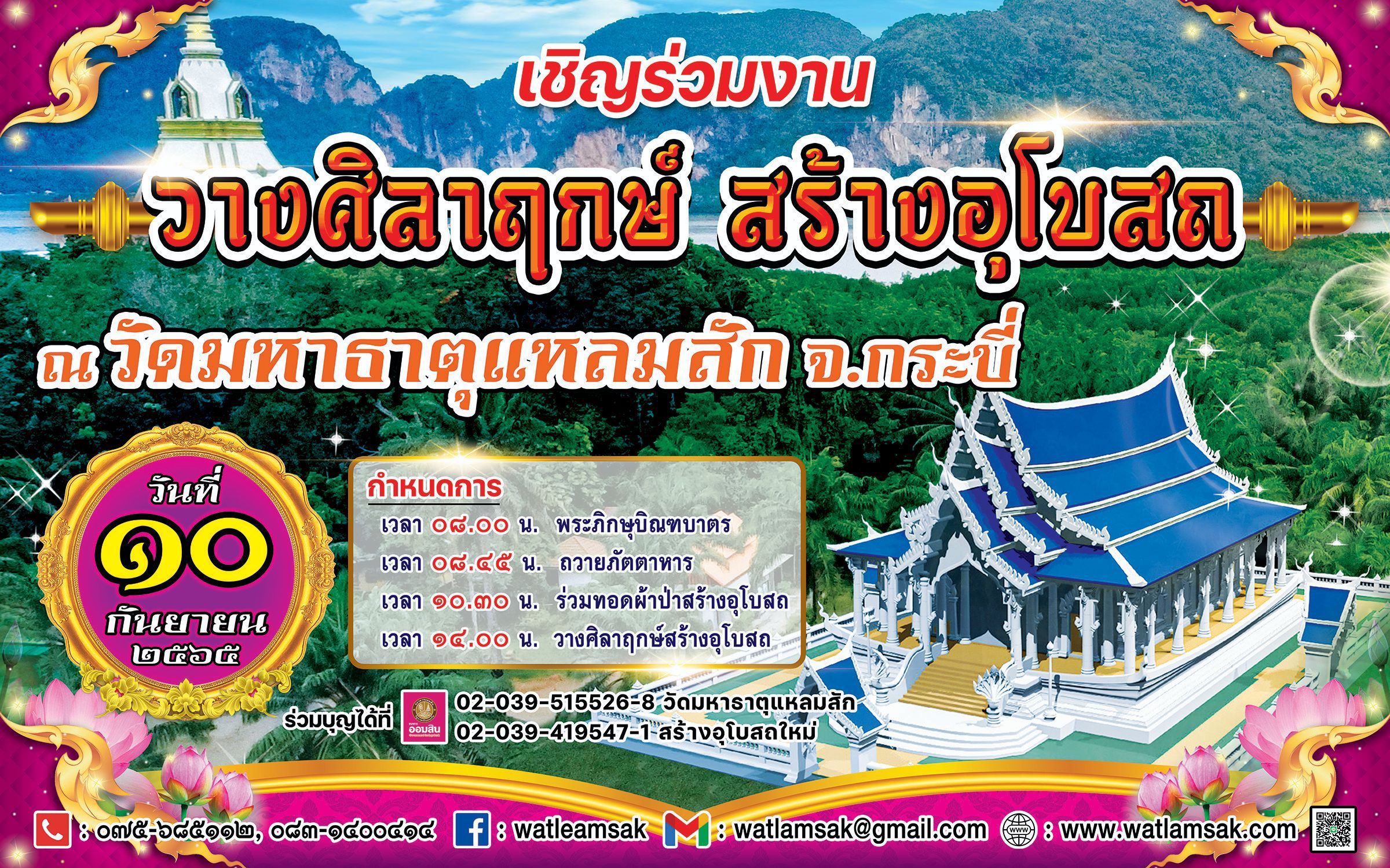 เขียน-ดู (0 ยังไม่มีความเห็น)ขอเชิญร่วมงานวางศิลาฤกษ์ สร้างอุโบสถ ณ วัดมหาธาตุแหลมสัก จ.กระบี่ ในวันเสาร์ที่ 10 กันยายน 2565