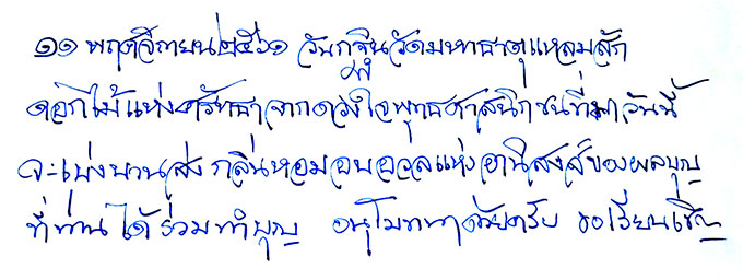| 08:30 น. | ถวายภัตตาหาร ถวายสังฆทาน |
