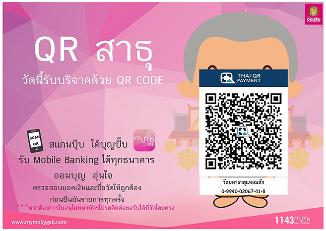 ขณะนี้ผู้มีจิตศรัทธาสามารถร่วมบริจาคกับวัดมหาธาตุแหลมสักผ่าน QR CODE ได้แล้ว